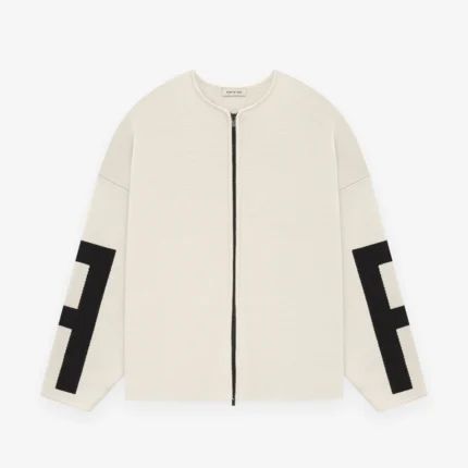 Essentials Merino Full Zip White Sweater